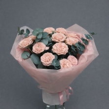 Нежный букет из розовых роз 5 пионовидных роз и кустовых роз 4 шт декорированных зеленью эвкалипта 2 шт и оформленных в нежную упаковку. Такой букет порадует свою обладательницу не меньше 15 дней...